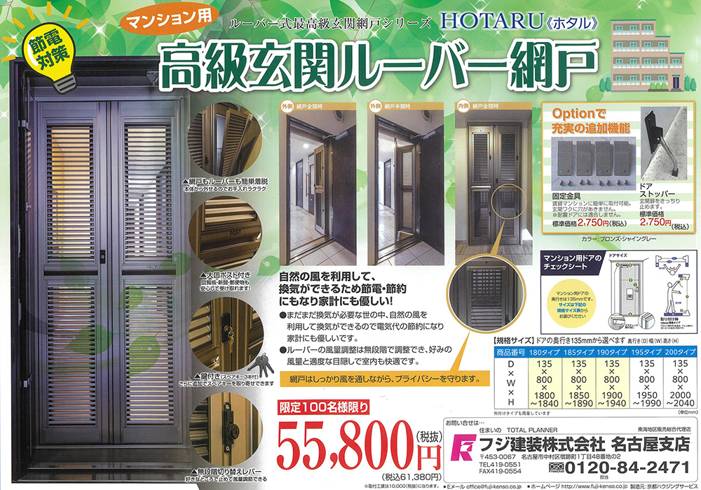 - 網戸はしっかり風を通しながら、無段階調整可能なルーバーでプライバシーを守ります